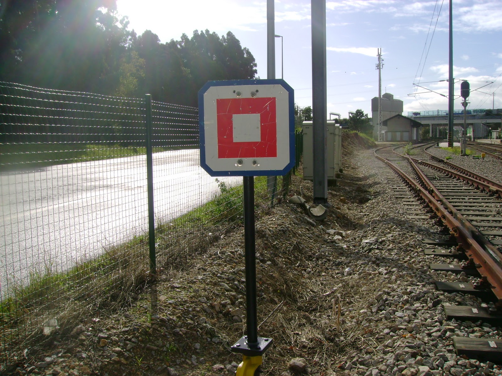 Fim de catenária. A linha não pode ser usada por composições elétricas, depois deste sinal. |