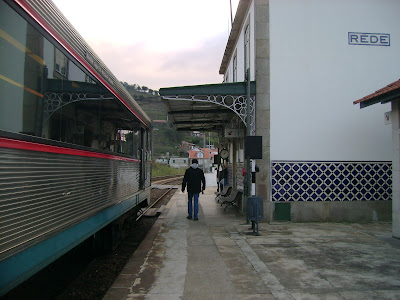 | Ainda são 09h05 e o grupo já estava na Estação Ferroviária da Rêde. Porém tínhamos uns longos quilómetros a percorrer. Note-se a presença do verdadeiro "guardador" da estação ao fundo, sentado. |