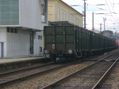 | A maioria dos vagões que hoje de manhã se encontravam aparcados na estação eram deste tipo "Ealos". |