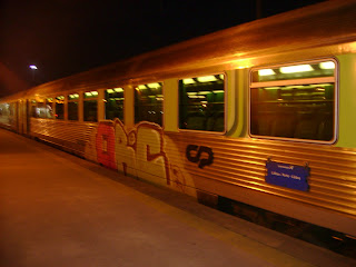 | Sendo formada por sete carruagens "corail", as duas últimas já tinham sido objeto de "pichagens" ou, se quiserem, de "grafities". O sol ainda dormia... |