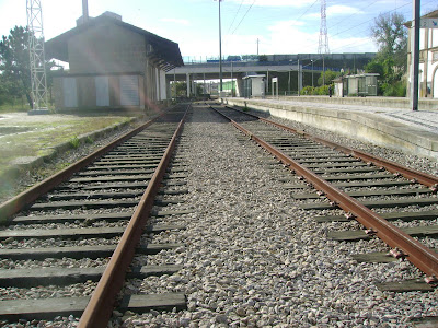 Do fim para o princípio...Vista desde a  Estação de Leça do Balio para a de